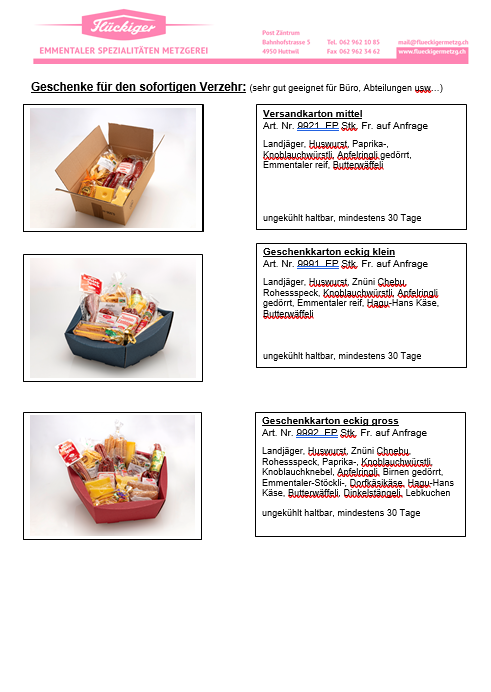 Für jeden Anlass das passende Geschenk. Stöbern Sie in unserer Galerie, lassen Sie sich von unseren "wurstigen" und "fleischigen" Ideen überraschen und bestellen Sie das gewünschte Geschenk sogar online.